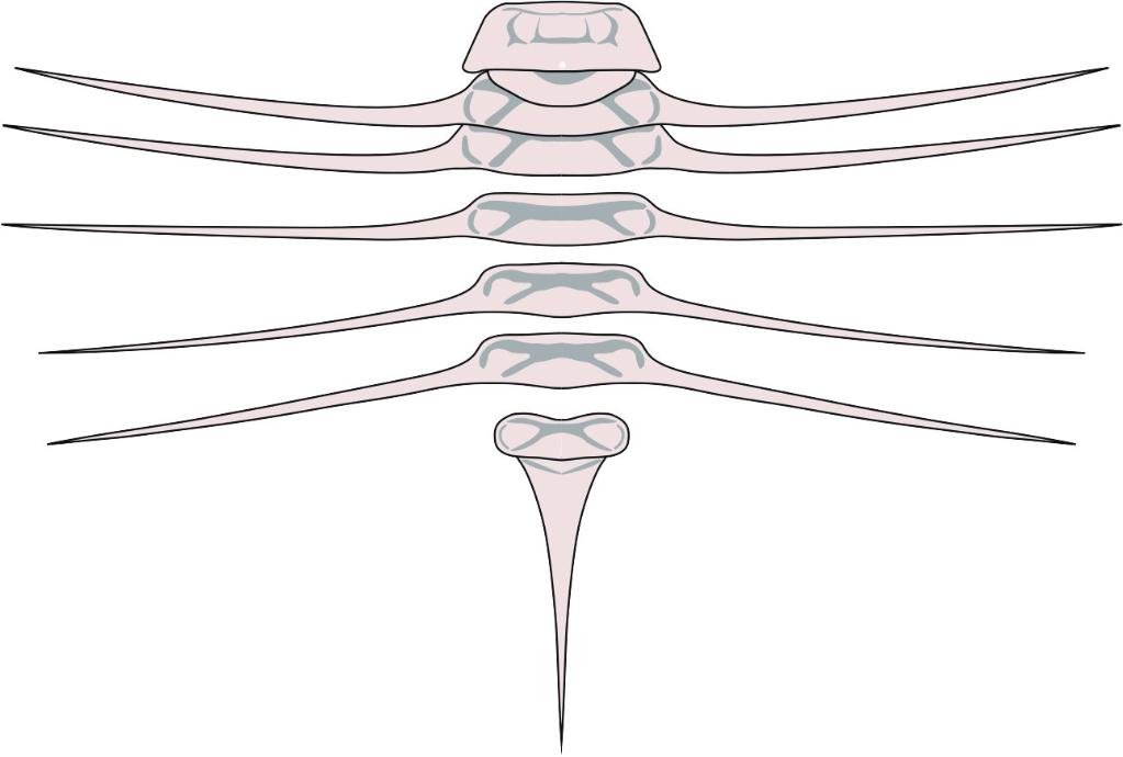 從形態(tài)上看,賽爾瑪爾迪布拉克蟲(chóng)外觀(guān)奇特。它的身體分為多節,且多個(gè)體節都向兩側伸出對稱(chēng)的尖刺。它的尾部還拖著(zhù)一條細長(cháng)的尾刺,仿佛一只全身布滿(mǎn)了刺的“蟲(chóng)”。