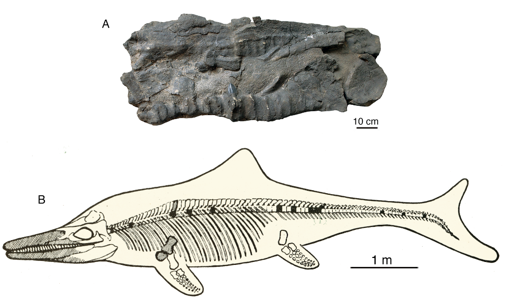喜馬拉雅魚(yú)龍化石及復原圖。(中國科學(xué)院古脊椎動(dòng)物與古人類(lèi)研究所供圖)