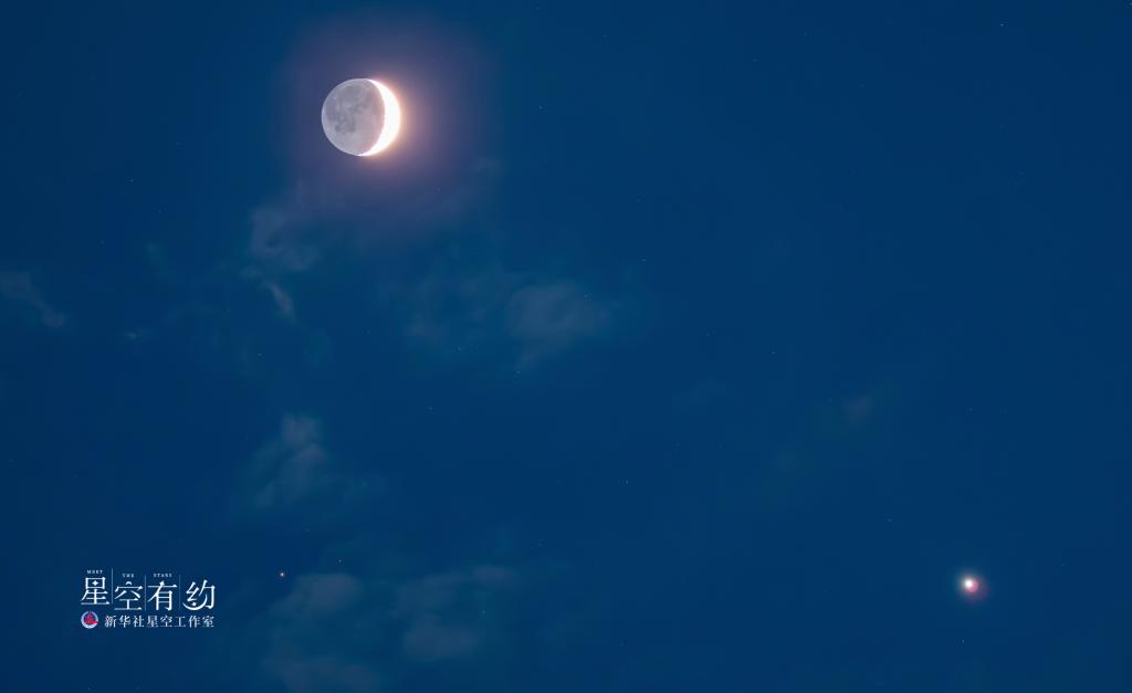 甘肅省天文攝影愛(ài)好者魯罡2023年6月24日在陜西秦嶺拍攝的金星伴月。(本人供圖)
