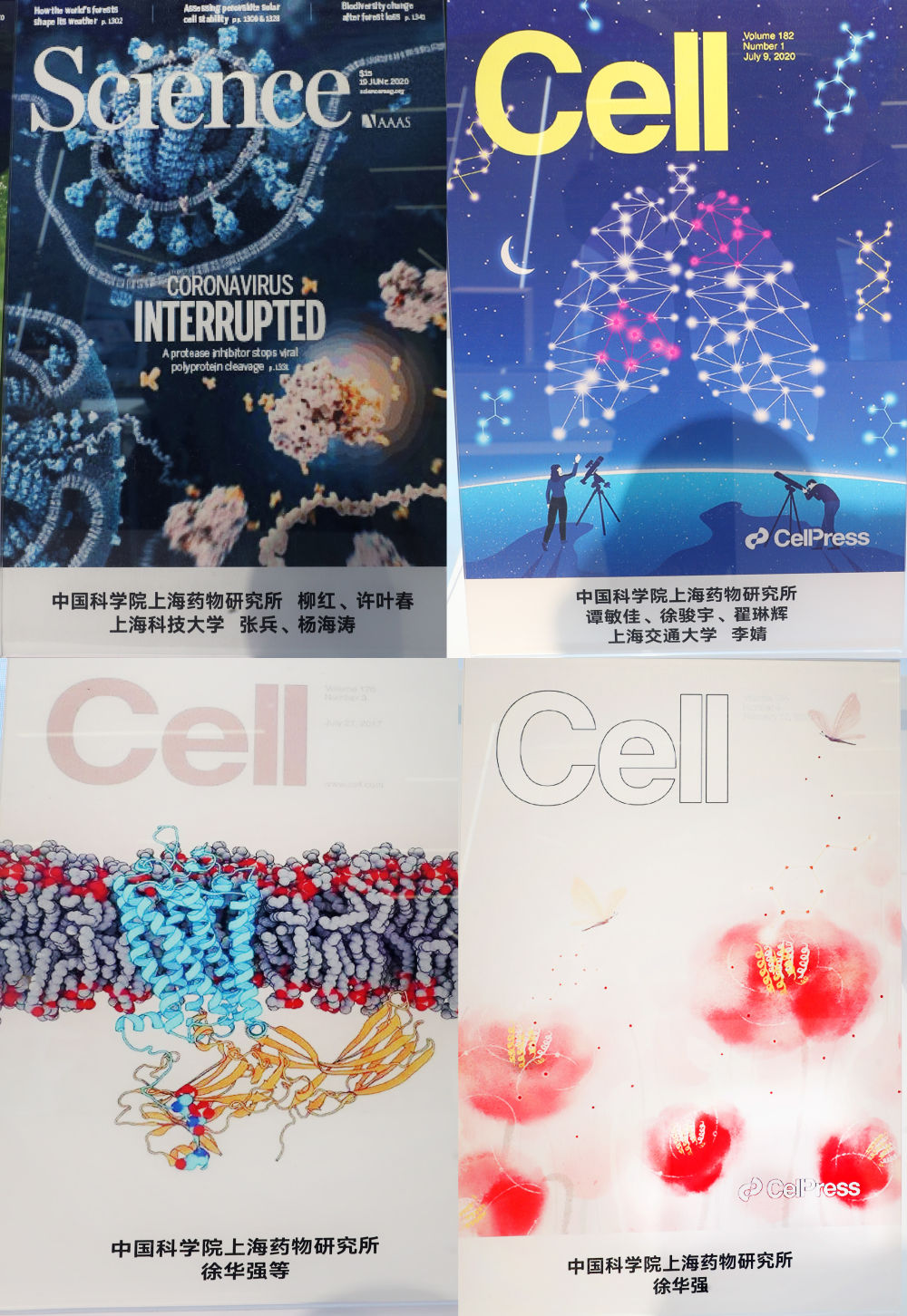 拼版照片是2023年11月29日在上??萍紕?chuàng )新成果展上拍攝的以中國科學(xué)院上海藥物研究所科研成果為封面的刊物。新華社記者 方喆 攝