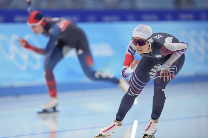 2月7日,北京冬奧會(huì )速度滑冰女子1500米決賽在國家速滑館“冰絲帶”打響。中國臺北選手黃郁婷出場(chǎng)時(shí),現場(chǎng)觀(guān)眾報以熱烈掌聲和助威聲。