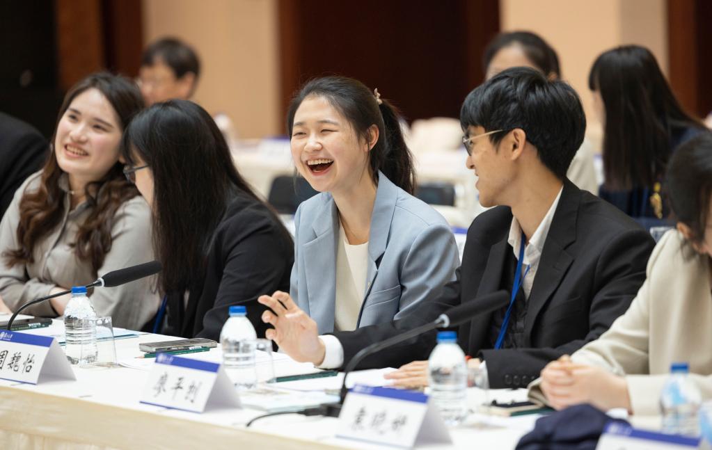 4月6日,在上海復旦大學(xué)的光華樓,臺灣青年學(xué)生與復旦大學(xué)學(xué)生交流座談。新華社記者才揚 攝
