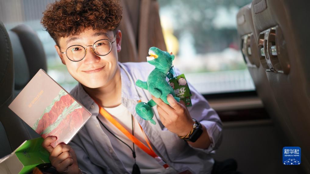 7月17日,李宣展示從甘肅省博物館購買(mǎi)的文創(chuàng )產(chǎn)品。新華社記者 黃揚 攝