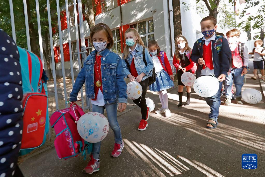 9月13日,在羅馬尼亞首都布加勒斯特,學(xué)生進(jìn)入學(xué)校參加新學(xué)期開(kāi)學(xué)典禮。當日,羅馬尼亞全國中小學(xué)開(kāi)學(xué),由于疫情日趨嚴重,政府要求所有人員必須戴口罩。