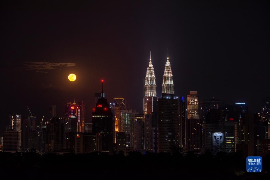 9月21日,中秋圓月映襯著(zhù)馬來(lái)西亞吉隆坡城市夜景。新華社發(fā)(張紋綜攝)