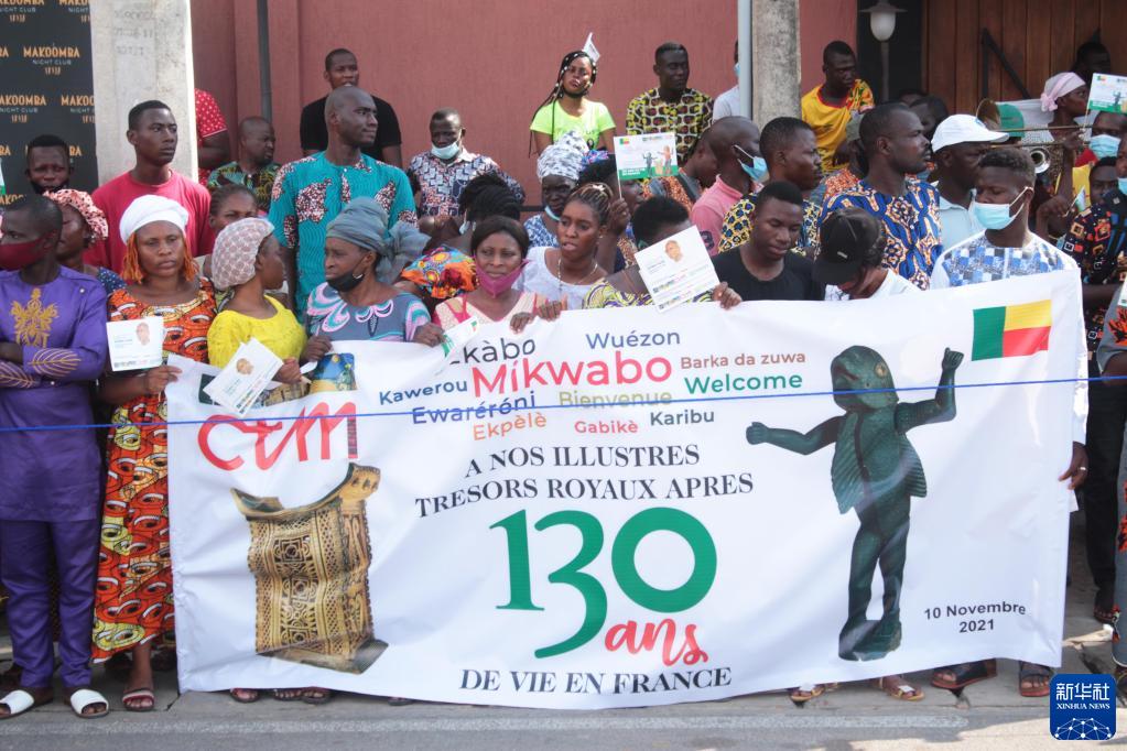 11月10日,人們聚集在貝寧科托努機場(chǎng)附近慶祝文物回歸。