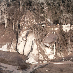 這是12月5日在印度尼西亞爪哇島東部盧馬姜拍攝的被火山噴發(fā)物覆蓋的受損橋梁。