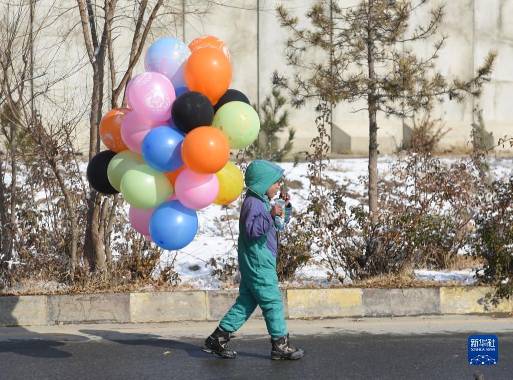 12月16日,一名男孩在雪后的阿富汗喀布爾街頭售賣(mài)氣球。新華社發(fā)(塞夫拉赫曼·薩菲攝)