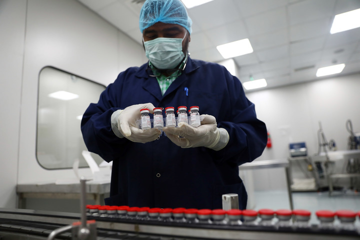9月6日,工作人員在埃及吉薩的埃及生物制品與疫苗公司疫苗生產(chǎn)廠(chǎng)對貼標的新冠疫苗進(jìn)行裝盒前準備。新華社發(fā)(艾哈邁德·戈馬攝)
