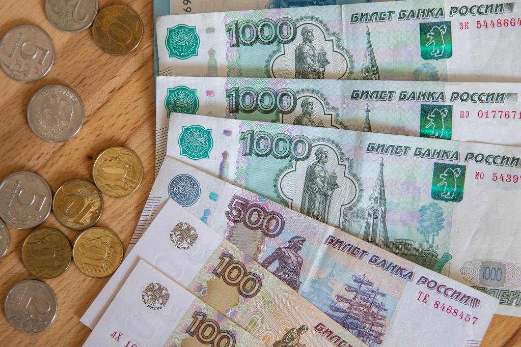 這是3月24日在俄羅斯首都莫斯科拍攝的盧布鈔票和硬幣。新華社記者白雪騏攝