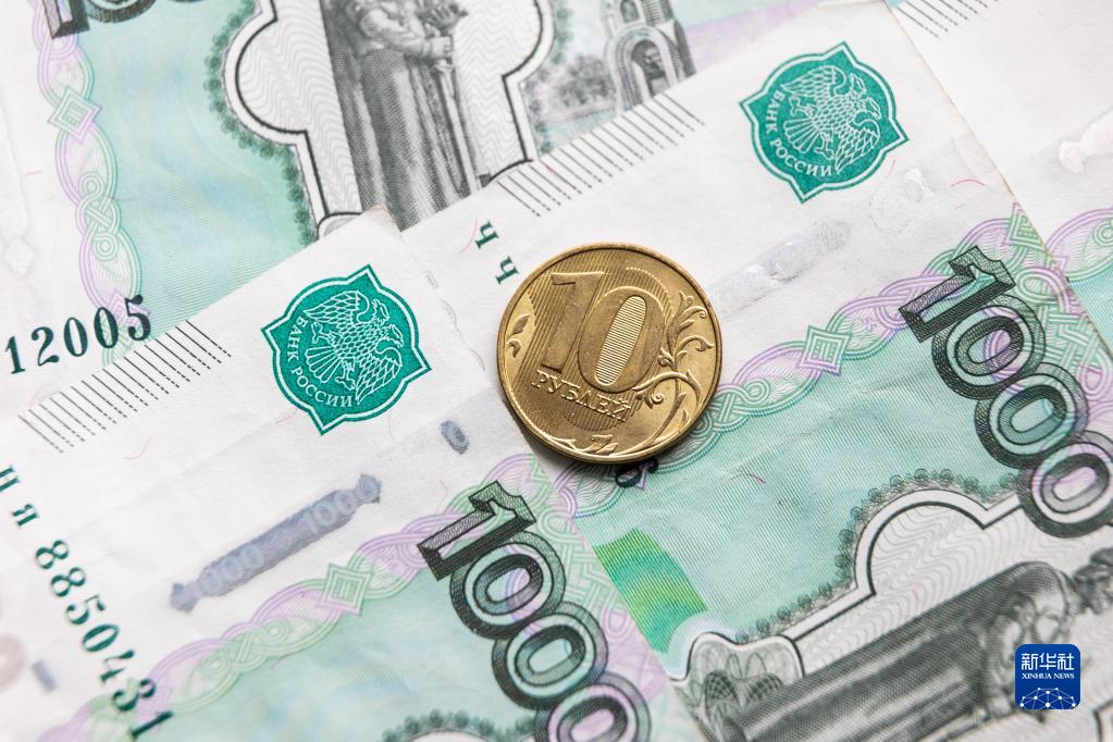 這是3月24日在俄羅斯首都莫斯科拍攝的盧布鈔票和硬幣。新華社記者白雪騏 攝