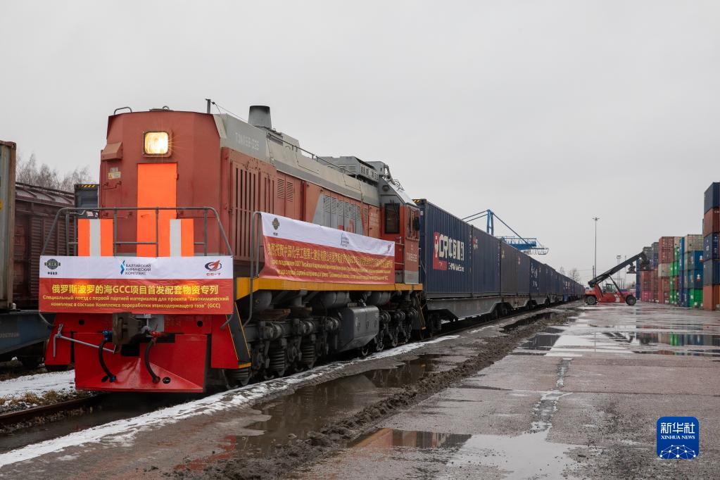 2021年3月15日,由中國成都首發(fā)至俄羅斯圣彼得堡市的中歐班列抵達俄羅斯圣彼得堡舒沙雷火車(chē)站。 新華社發(fā)(俄羅斯鐵路公司十月鐵路局供圖)