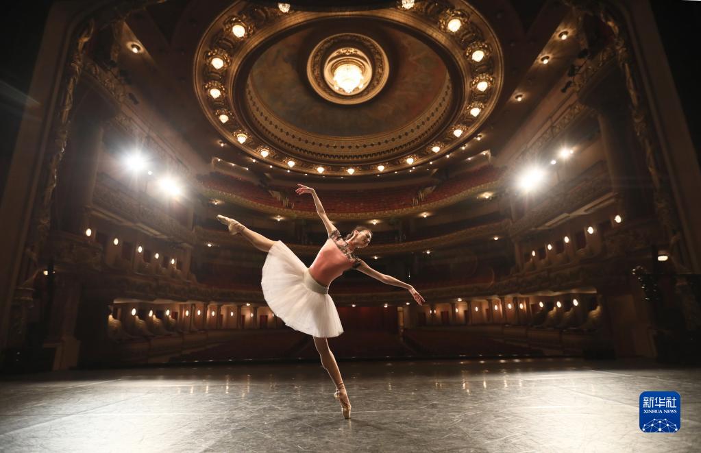 2019年5月24日,在巴西里約熱內盧,中央芭蕾舞團演員方夢(mèng)穎在里約熱內盧市政劇院排練。中央芭蕾舞團攜《大紅燈籠高高掛》來(lái)到巴西,為當地民眾獻上帶有濃郁中國元素的精彩表演。 新華社發(fā)(劉宇攝)