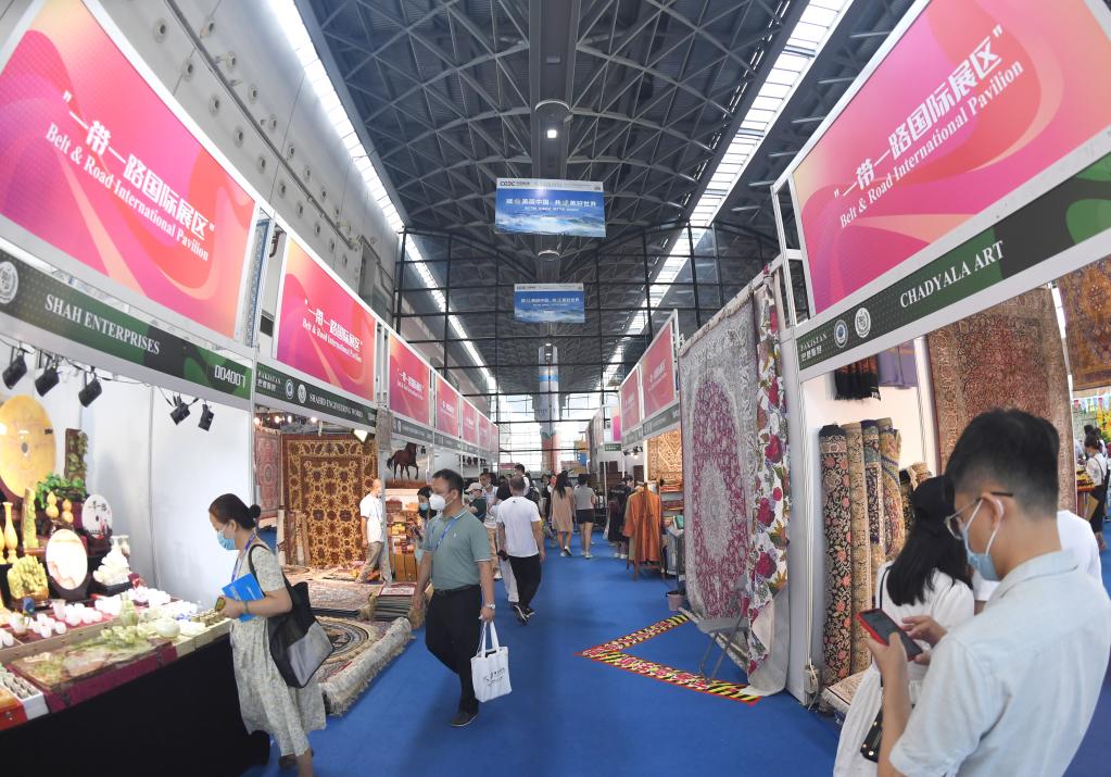9月17日,參觀(guān)者在東博會(huì )“一帶一路”國際展區參觀(guān)。(新華社記者周華 攝)