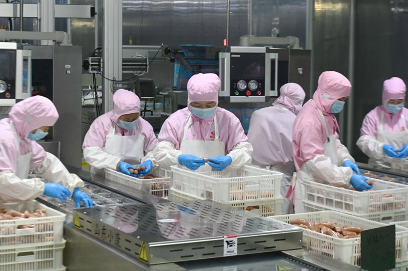 ↑11月16日,在福州元洪投資區,福建御冠食品有限公司員工在食品生產(chǎn)線(xiàn)上檢驗食品質(zhì)量。