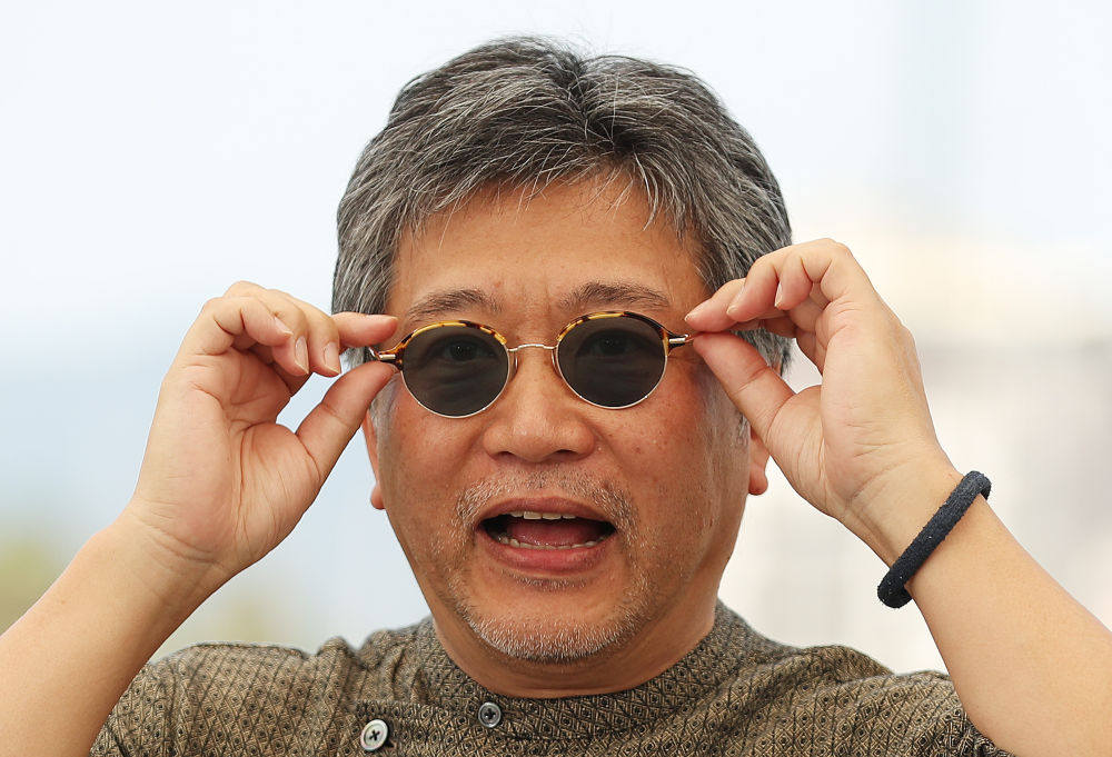 ↑2022年5月27日,日本導演是枝裕和出席影片《掮客》的拍照式。