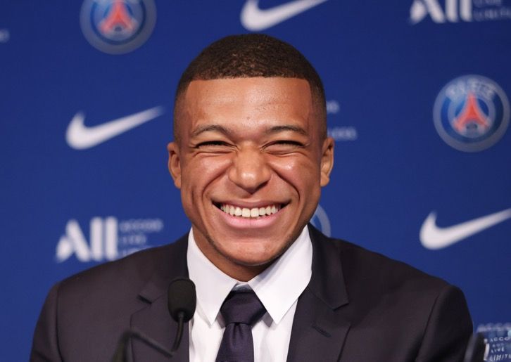 ↑2022年5月23日,在法國巴黎王子公園球場(chǎng),姆巴佩出席與巴黎圣日耳曼俱樂(lè )部續約的新聞發(fā)布會(huì )。