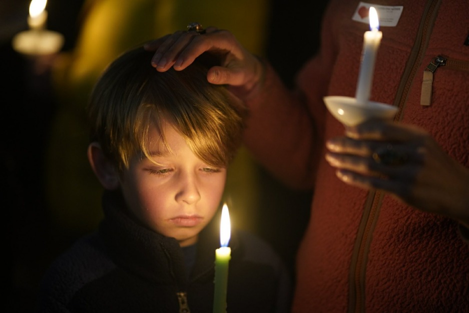 1月27日,一個(gè)男孩在美國加利福尼亞州半月灣市舉行的守夜活動(dòng)中哀悼槍擊事件遇難者。新華社記者 吳曉凌 攝