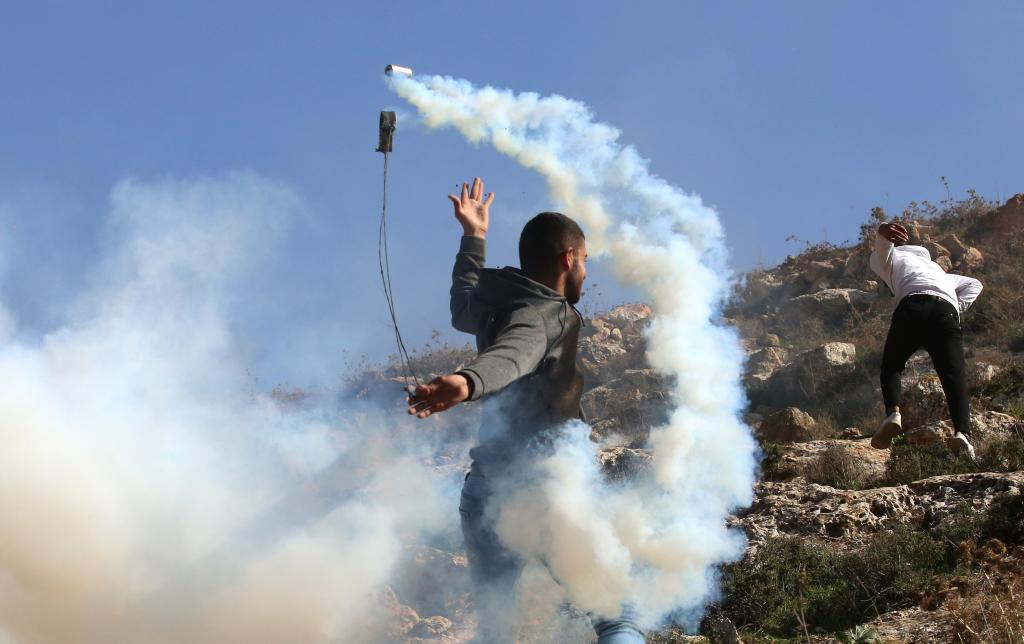 2023年1月27日,在約旦河西岸城市納布盧斯東部村莊拜特代堅,巴勒斯坦抗議者與以色列士兵發(fā)生沖突。新華社發(fā)(尼達勒攝)