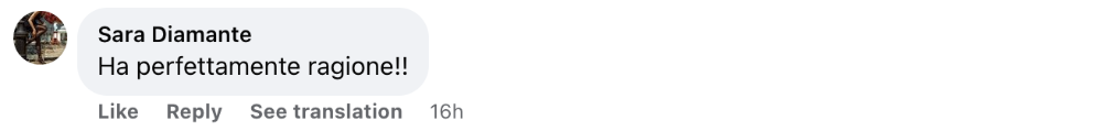 意大利網(wǎng)友薩拉·迪婭曼特留言說(shuō):“說(shuō)的絕對正確!”