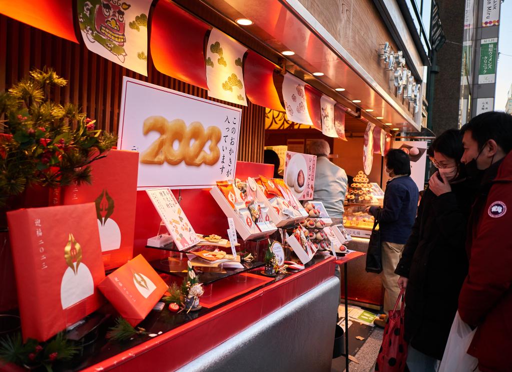 這是2022年12月26日在日本東京銀座一家商店拍攝的2023年新年甜品。新華社記者張笑宇攝