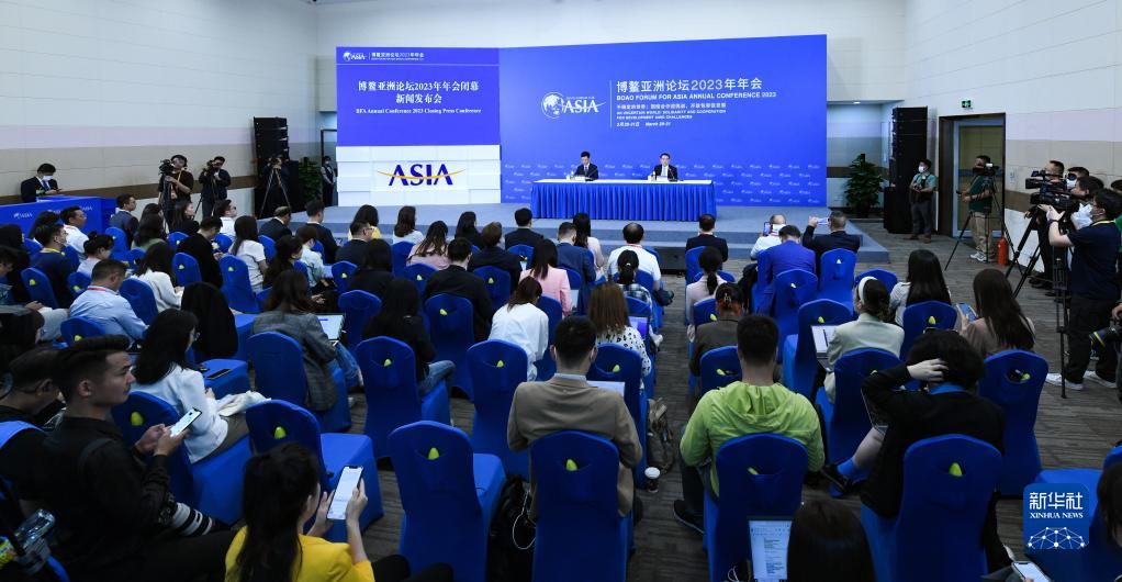 3月31日拍攝的博鰲亞洲論壇2023年年會(huì )閉幕新聞發(fā)布會(huì )現場(chǎng)。新華社記者 楊冠宇 攝