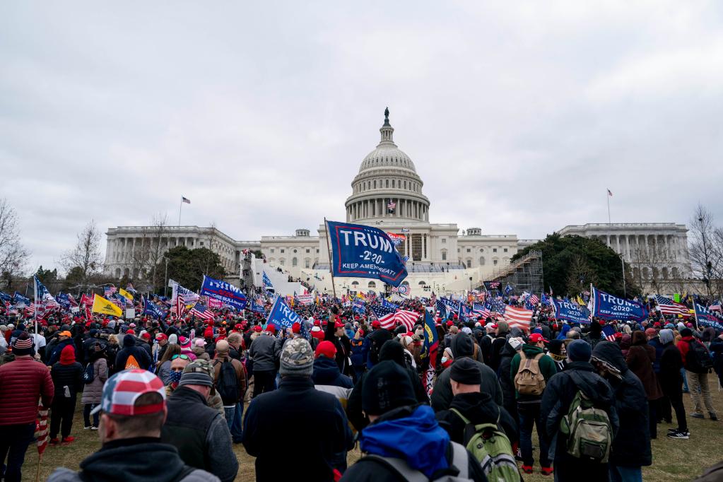 2021年1月6日,在美國首都華盛頓的國會(huì )大廈前,時(shí)任美國總統特朗普的支持者舉行示威游行。新華社記者 劉杰 攝