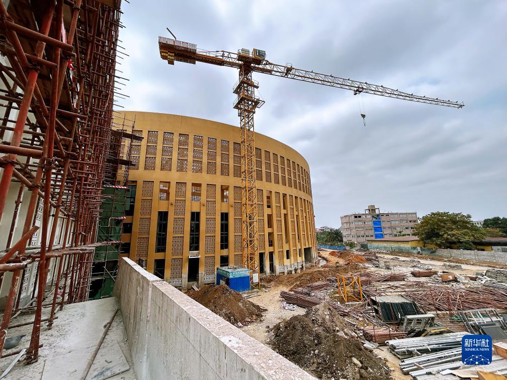 這是在剛果(金)首都金沙薩拍攝的中部非洲文化藝術(shù)中心項目施工現場(chǎng)(資料照片)。新華社發(fā)