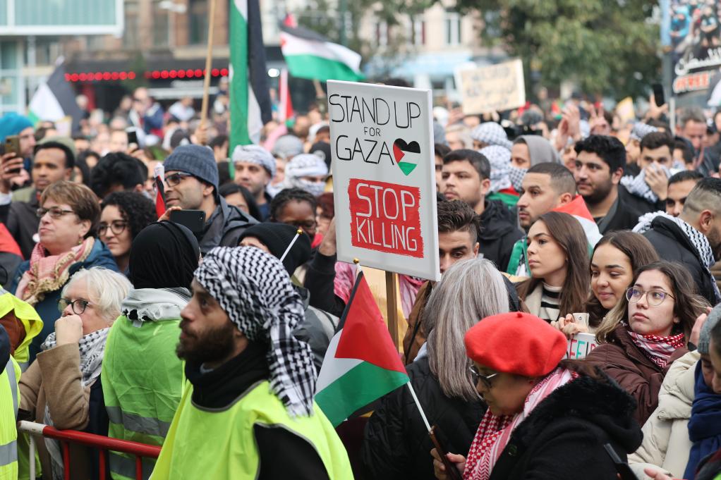 11月11日,眾多巴勒斯坦支持者在比利時(shí)布魯塞爾集會(huì ),呼吁盡快實(shí)現加沙?;?。新華社記者 趙丁喆 攝