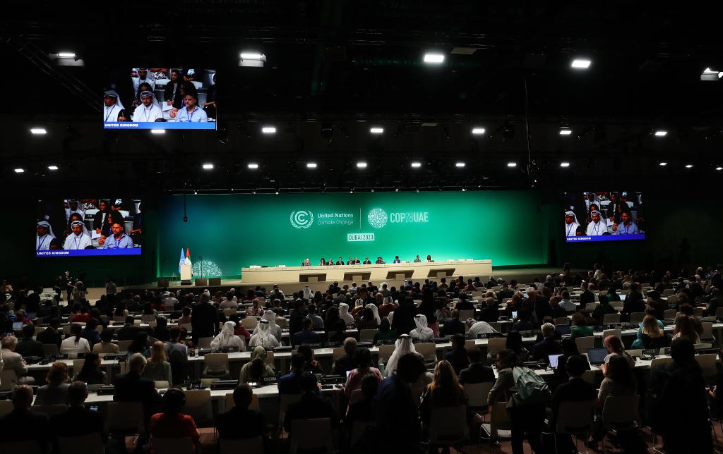 這是2023年11月30日在阿聯(lián)酋迪拜拍攝的聯(lián)合國氣候變化迪拜大會(huì )開(kāi)幕現場(chǎng)。新華社記者 王東震 攝
